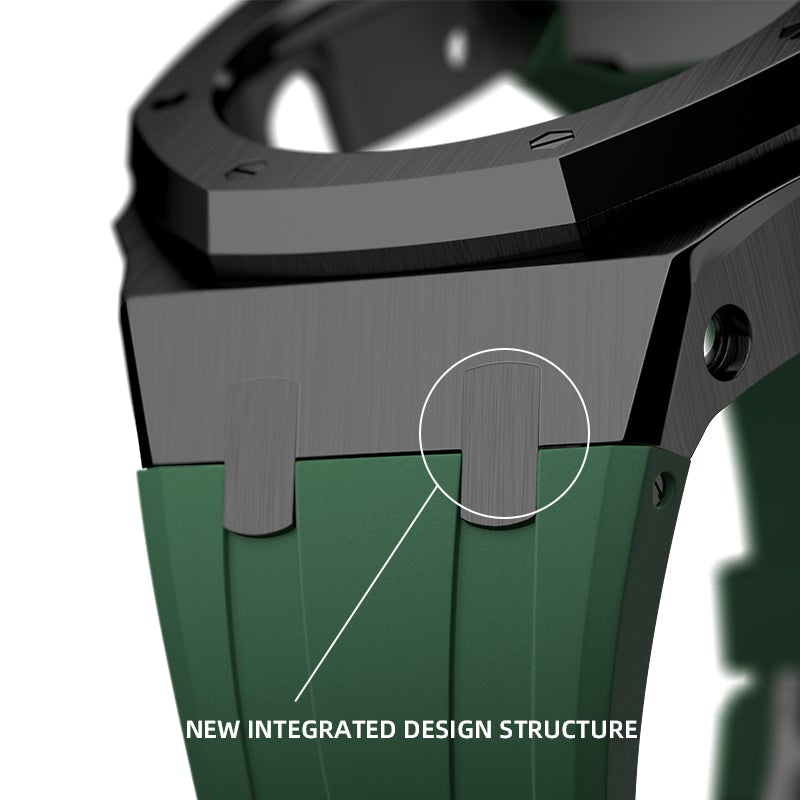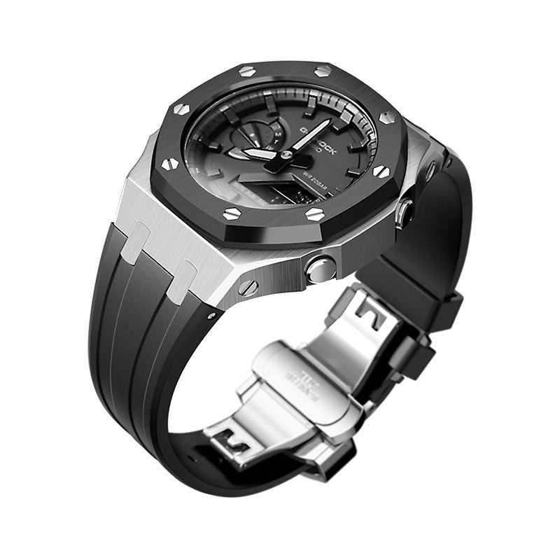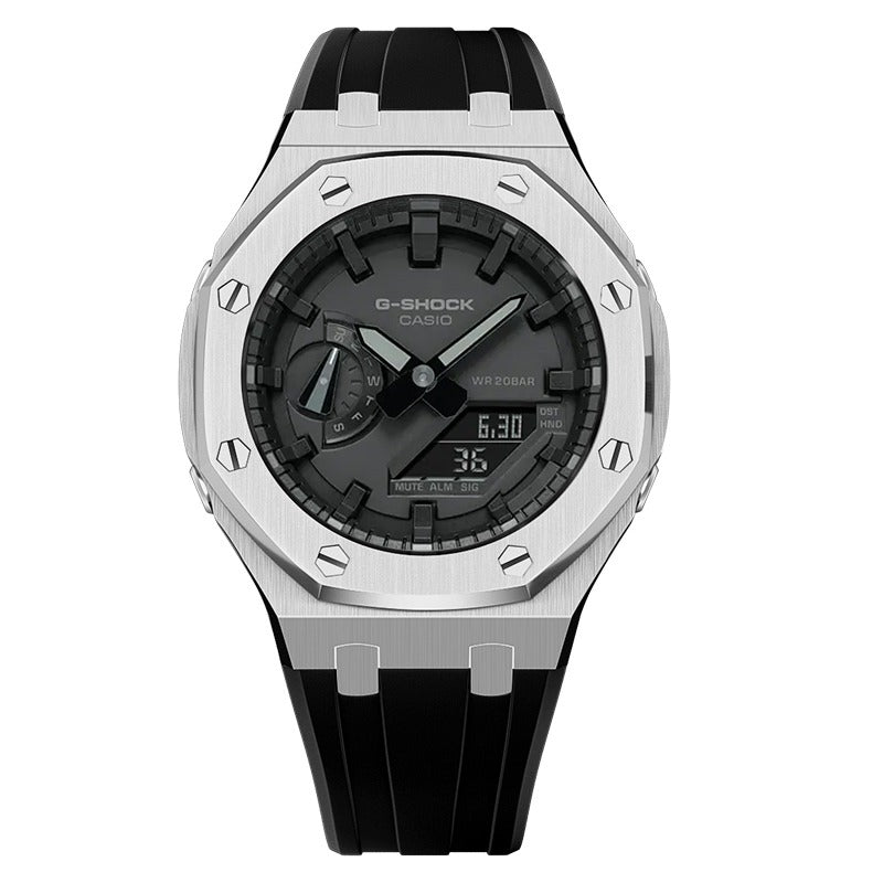 New Royal CasiOak modified watch G-Shock Casio GA-2100-1A1 45mm silver case, black bezel & rubber strap - Gen 4